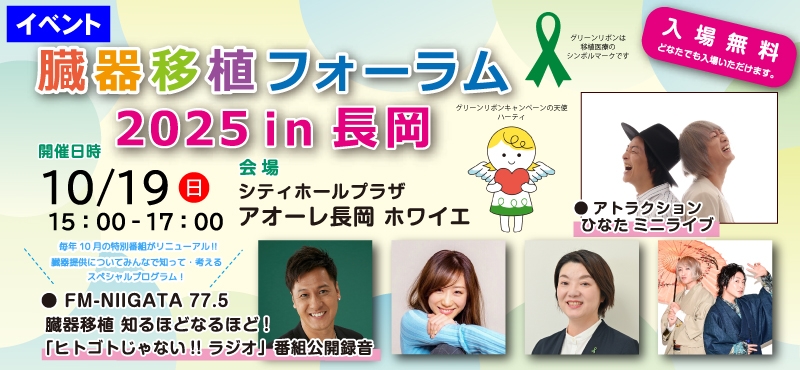 10/19(日)アオーレ長岡で臓器移植フォーラム2025 in 長岡 臓器移植 知るほどなるほど!『ヒトゴトじゃない‼ラジオ』公開録音開催!