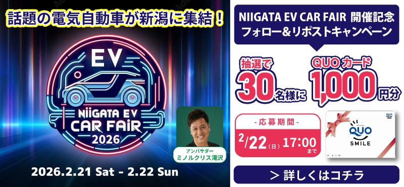 2/16(月)~2/22(日) NIIGATA EV CAR FAIR×FM-NIIGATA フォロー&リポストキャンペーン!