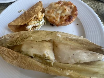 トウモロコシ粉の生地を焼かずに蒸す料理で、その際に生地をトウモロコシの皮で包むのが特徴です。メキシコ風「ちまき」といったところ。ちょっと重い感じだったかな。
