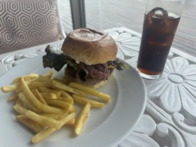 アメリカやカナダの観光客が多い土地柄、ハンバーガーもめっちゃおいしい!パテが肉厚!