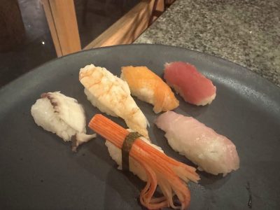 日本料理店で食べたお寿司。全体的にごはん多め、具は薄め。