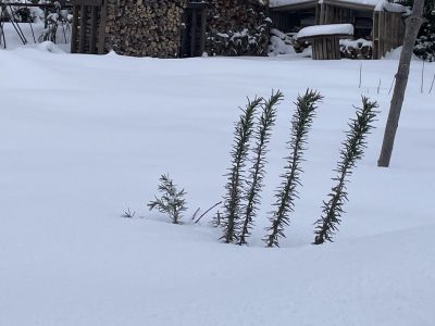 完全に埋もれているのもあるけれど…雪下ローズマリー🌿