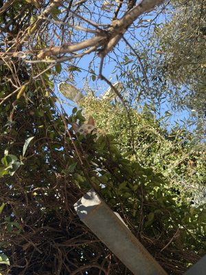 たくさん歩いて、広場の木陰でちょっと休憩していたら、頭上からカサカサと音がして…