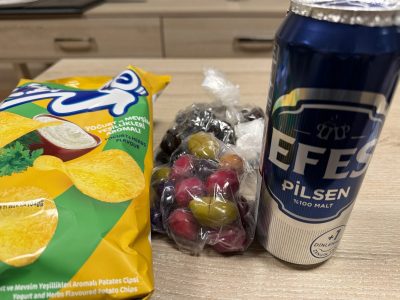 ホテルに戻ってからは、ビールと昼間に買ったオリーブでプチ晩酌。