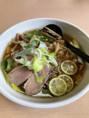 番組終了後のランチは、美人の湯の新メニュー「愛KAMOラーメン」を味わいました!