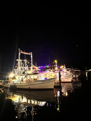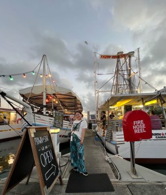 マリーナ上の漁船を改装した船上レストランスタイル。景色を眺めながら食事出来ます。