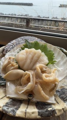 ついさっきまで生きていたホタテをお刺身で❤