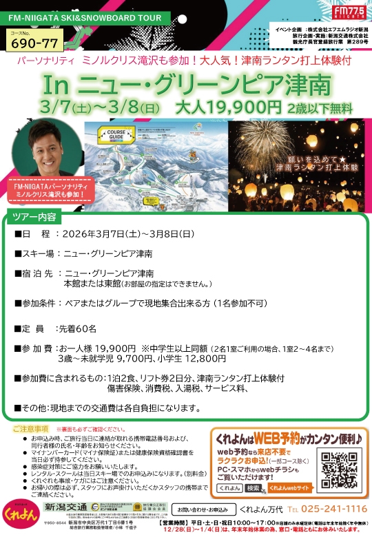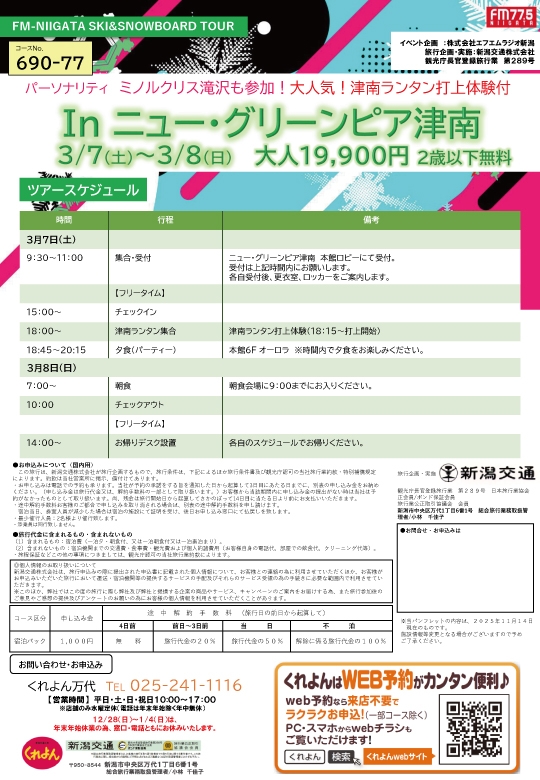 | 旅行企画・実施 | 新潟交通株式会社 観光庁長官登録旅行業 第289号 |