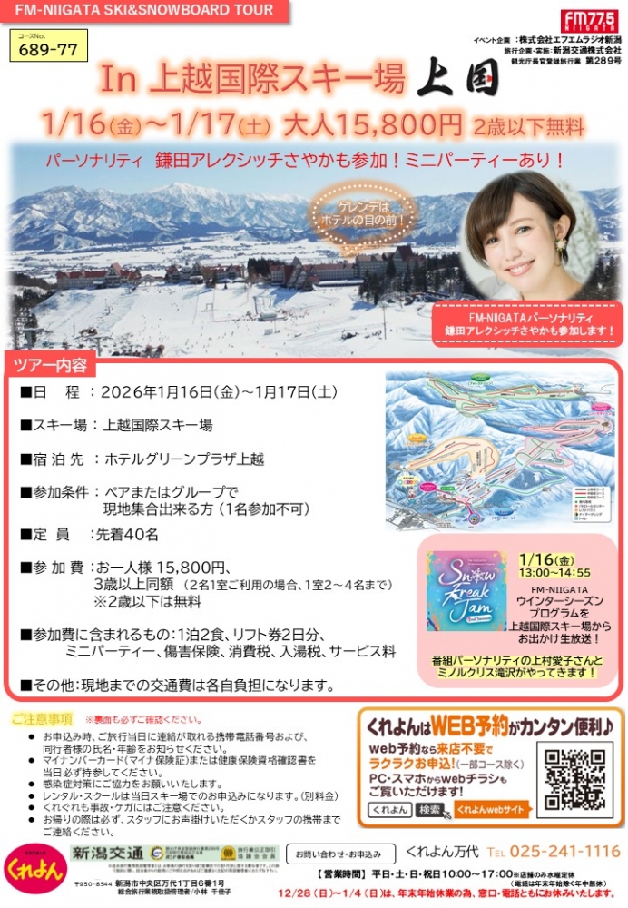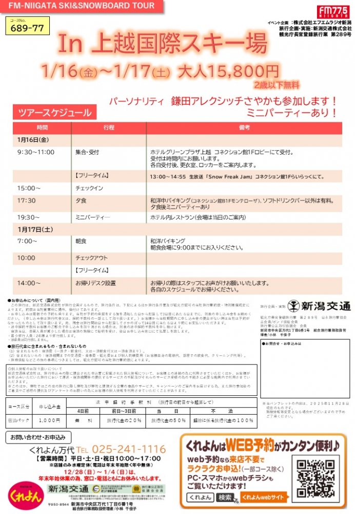スキーツアーのお申し込みは、新潟交通くれよん まで