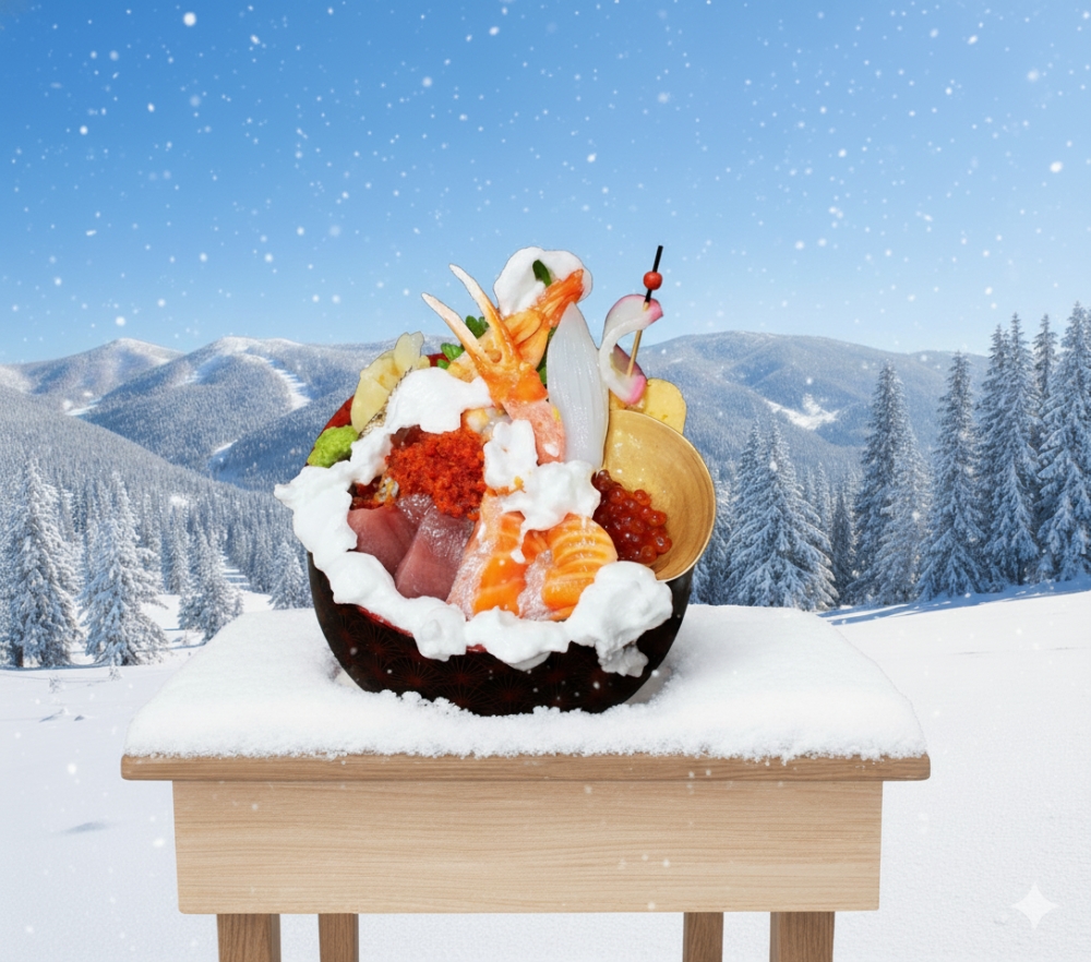 | 内容 | 雪山で出会う海の幸にキュン♡ 佐渡産コシヒカリの上に、佐渡天然鯛をはじめ9種類の海の幸を贅沢に盛り付け。ふわふわのメレンゲで雪景色をイメージした、SnowJam限定の特製海鮮丼です。 |