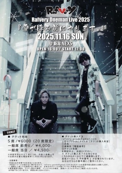 Rafveryが、11月16日(日)新潟市中央区NEXSで、ワンマンライブを開催します。