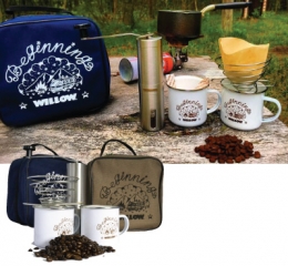 セット内容: ポーチ、エナメルマグ2個、コーヒーミル、ドリッパー