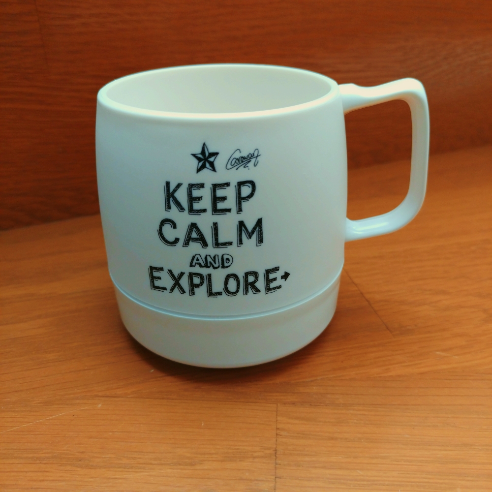 お馴染みUSA製のマグでCaravanさん手書きのデザイン。アウトドアなど持ち運びに最適☆