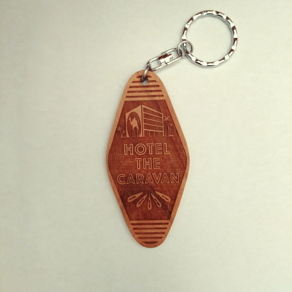 コチラはホテルのキータグをイメージして制作。桜の木材に削りと焼き込みで良い塩梅になっています♪