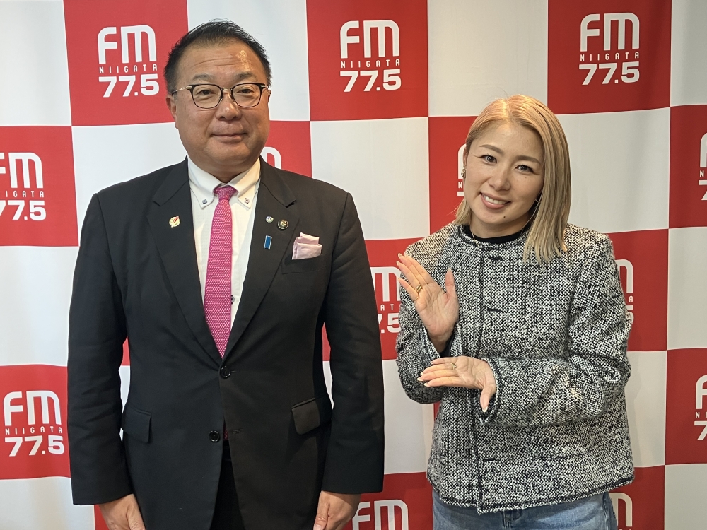 五泉市の田邊正幸市長と五泉市観光大使の斉藤瞳でお送りしている