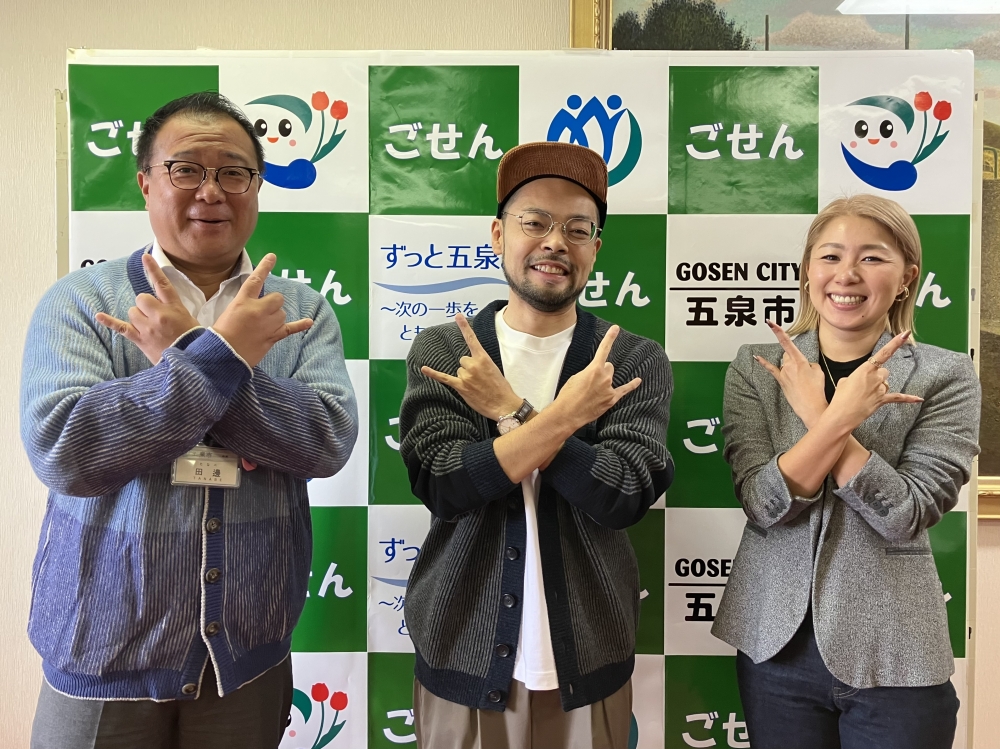 五泉市の田邊正幸市長と五泉市観光大使の斉藤瞳でお送りしている