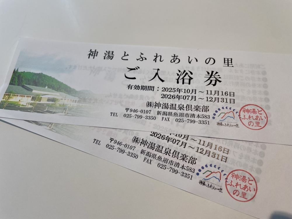 ②神湯温泉から 神湯とふれあいの里 日帰り温泉入浴券 ペア3組様!